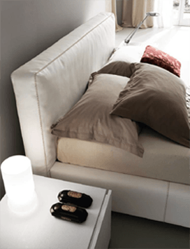 Intimacy and warm appeal are precious and cherished in the night area, where sophistication and sobriety, elegance and warmth must co-exist for a subtle balance of functional solutions and refined materials to please our senses. Comfort and contemporary design , refinement and pleasure provide the right balance. Nightfly is a collection for the night area in three different versions: tone-on-tone white, ebony and black add a touch of elegant exoticism to the overall effect. Gloss lacquers and soft upholstery with a crocodile finish provide precious and elegant textures for refined interiors. White on white, gloss pearl white lacquer and upholstery with a mother-of-pearl crocodile finish for the essential elements of a room. Linear shapes and concealed solutions for a functional and refined overall effect. A padded and upholstered headboard with a mother-of-pearl crocodile finish and a rear panel, in gloss lacquer and led lighting, create a unique arrangement that can be customized. Asymmetrical shapes and different materials for a bed equipped with a storage base and a mattress lifting device. Essential solutions with an interplay of open and closed spaces: in alternating upholstery with a crocodile finish and gloss lacquers. Minimalist shapes provide a harmonious contrasting effect, in which functional elements are concealed for overall balance and comfort.