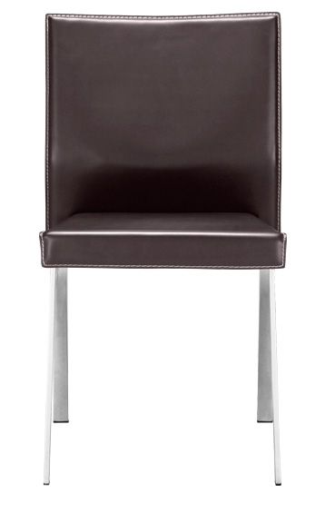 The Dining Collection presents a Boxter Dining Chair that features a durable regenerated leather seat and back. It has solid steel chrome frame making the chair sturdy as well as comfortable. It is sold in sets of two and comes in two classic colors: black and espresso. The contemporary and stylish design of the Boxter Dining Chair brings a pleasant and charming atmosphere into any dining space.