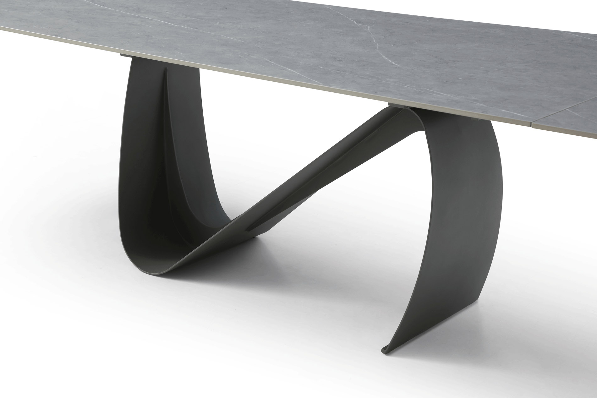 The ceramic tabletop is chemical resistant, fireproof, UV, and heat resistant
