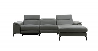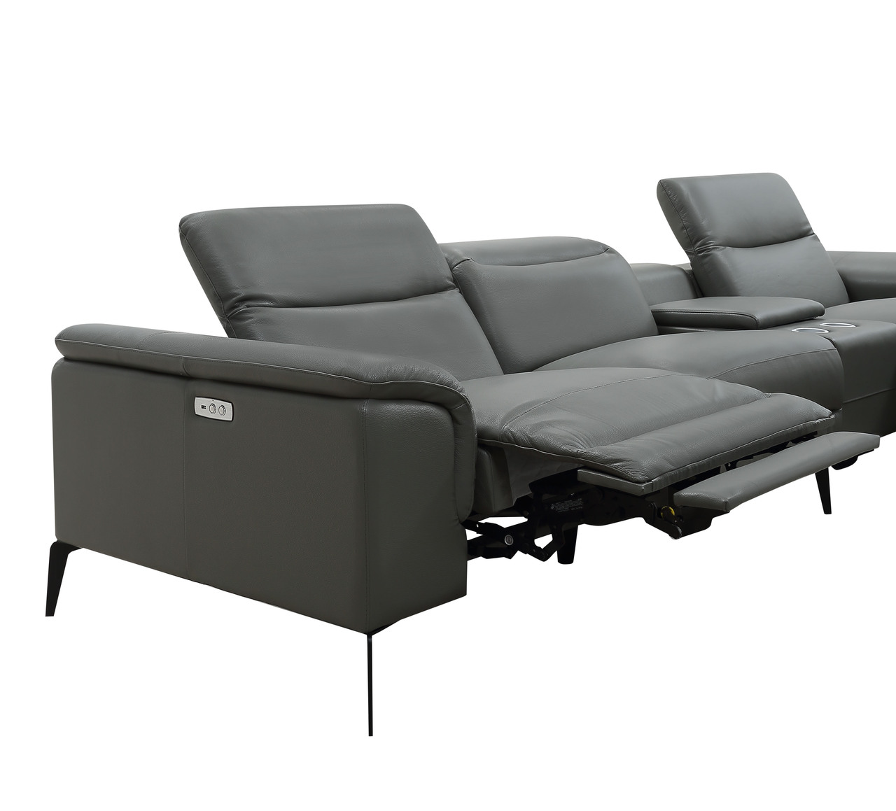 This modern grey sectional sofa is made of hardwood construction and draped in the highest grade leather. Sleek and although conservative, this sectional sofa is sure to be a perfect addition to any place. No matter where you use it, the sectional with one electric recliner will be the best seat in the house for comfort and the classic chic element in your design. So grab your favorite book, the television remote, or a few of your closest friends and relax knowing that the gentle curves and sharp tailoring of the sofa ensure that you look good in the process.