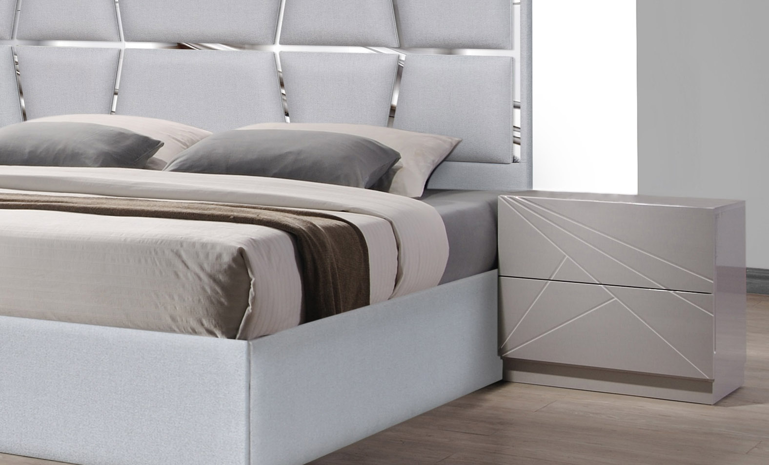 The superlative material and sturdy support are also traits that add to the uniqueness of this lush product. Do a favor to yourself by purchasing this comfortable and delivering product. Lia modern bed is a sleek and durable designed bed, which has a solid base and sturdy support. It features a padded headboard with mirrored accents and a bed frame upholstered in sturdy tight woven canvas fabric to complete its unique design.