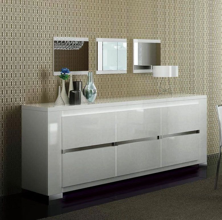 This Dining Buffet offers a contemporary approach in design with a slight classic flavor. Durable wooden construction combined with rich high gloss finish give this Buffet its ultra modern exterior while the white color adds a touch of the elegance.