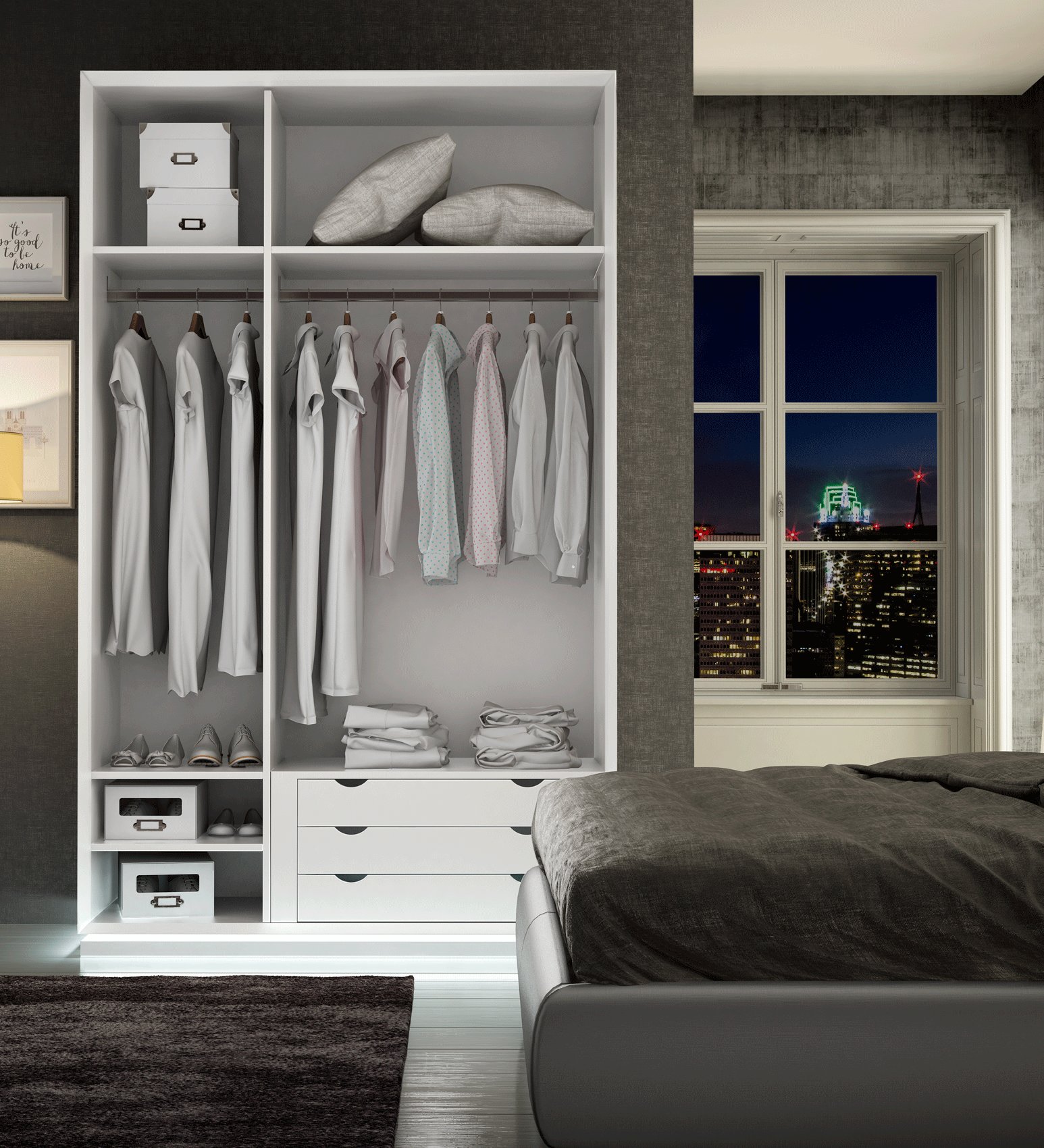The nightstand is offered in a set of two to gracefully accompany your bed while keeping your bedside essentials close at hand. It features two medium-sized drawers with flat panel fronts and a functional rectangular top covered with scratch-resistant lacquer. Coated in the crisp white finish, the nightstand could be complemented with the LED lights in the base (special order). The dresser is featuring high gloss fronts, matte sides and four ample sized drawers for clothes and linen.