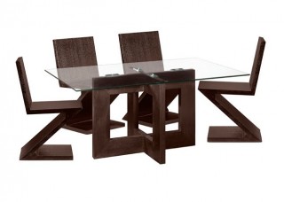 The Dining collection presents a Madera Finn Dining Table that is as elegant as it is comfortable. It features wood veneer legs stained chocolate, giving it a very distinguished look. The top is made of clear tempered glass, contributing to the contemporary look of this piece. This table is unique, stylish, and would make a great addition to your home!
