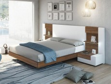 White matte lacquer on real walnut wood bed frame with lighted headboard. This uber-modern bed appears to float, giving it an ethereal quality of supreme lightness. It features a geometric design adding interest to the headboard and brings a striking visual to the bedroom. We love platform beds because they do not require the bulkiness of box springs. Made in Spain: the stylish collection that combines beauty with functionality. Simple shapes and elegant lines provide cutting-edge design, adding great appeal by matching the headboard with sides, fronts, and optional nightstands. The collection is designed with many features perfect for ... more info |