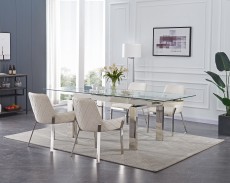 High End Rectangular All Clear Glass Top Leather Modern Dining Set
