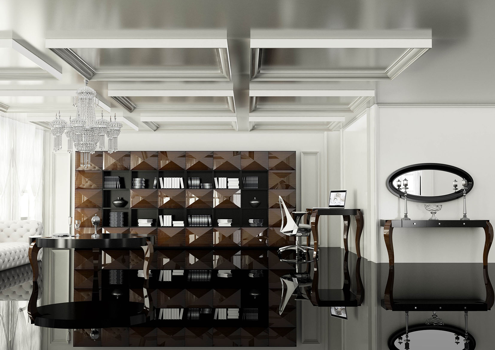 Choosing the right pieces of furniture is crucial in order to feel relaxed and comfortable. Maximize every square foot of your house with this wall unit. Rich black and bronze color palette, give an amazing luxurious vibe. The wall unit comes with fourteen open shelves which can be used as a display of trophies, books or pottery, and enabling the storage of dining room accessorizes, dishes, towels, while the drawers can be used as additional storage for controllers, manuals and anything that you would like to store away. Open shelfs allows you to dust as often to keep the area clean.
