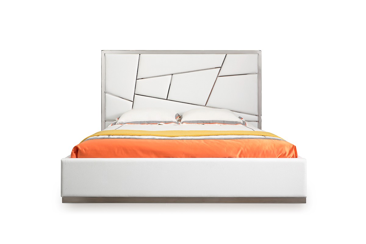 Stunning in its luxurious white color, the white leather bed is an artwork in itself. This dazzling piece of fine furniture with its tall tufted leather-wrapped headboard is easy to clean and maintain its splendor.