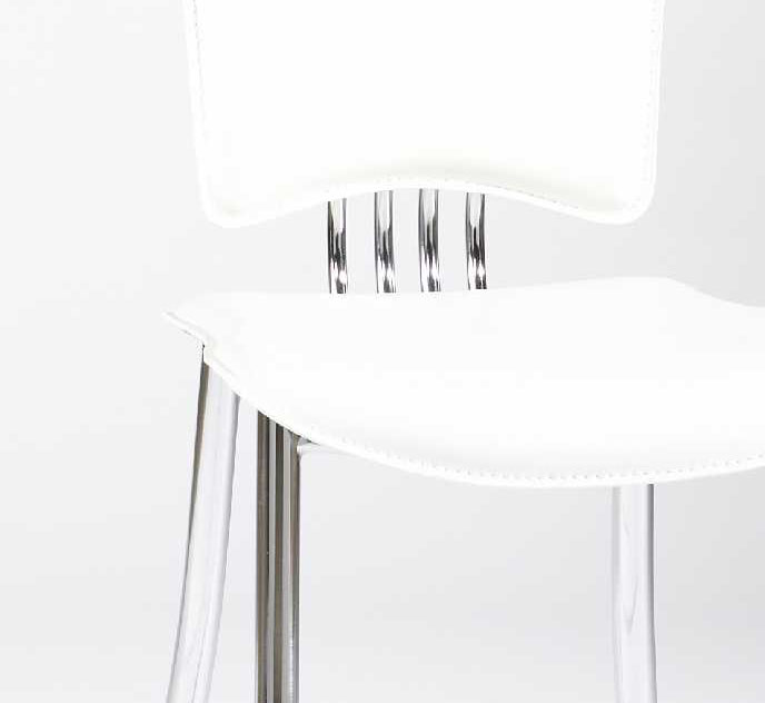 The collection takes comfort to a whole new level, without sacrificing on the style front. Add a touch of sophistication and glamour to your home with this collection. Ultra-modern addition to your dining room. This dining chair, interchangeable chrome frame, upholstered seats and back. Your choice is white or black upholstery.