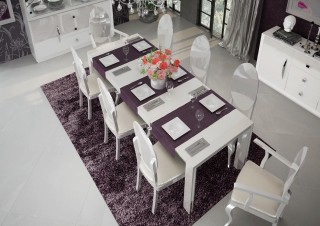 The curio is supplied with two glass doors and two bottom drawers. Its clear tempered glass is strong and elegant. You can display all your beautiful treasures on this wall unit, and its unique design will surely turn heads and give more attention to those items you wish to display. The sideboard unit has door doors and three drawers, all featuring 'soft close' hinges and doors opening from the central points. The recessed design of both the doors and base enhance this modern design sideboard. The chairs provide plenty of comfort with an ergonomic seat and wide wood backrest. This elegant collection offers a charming beauty and style for your home decor.